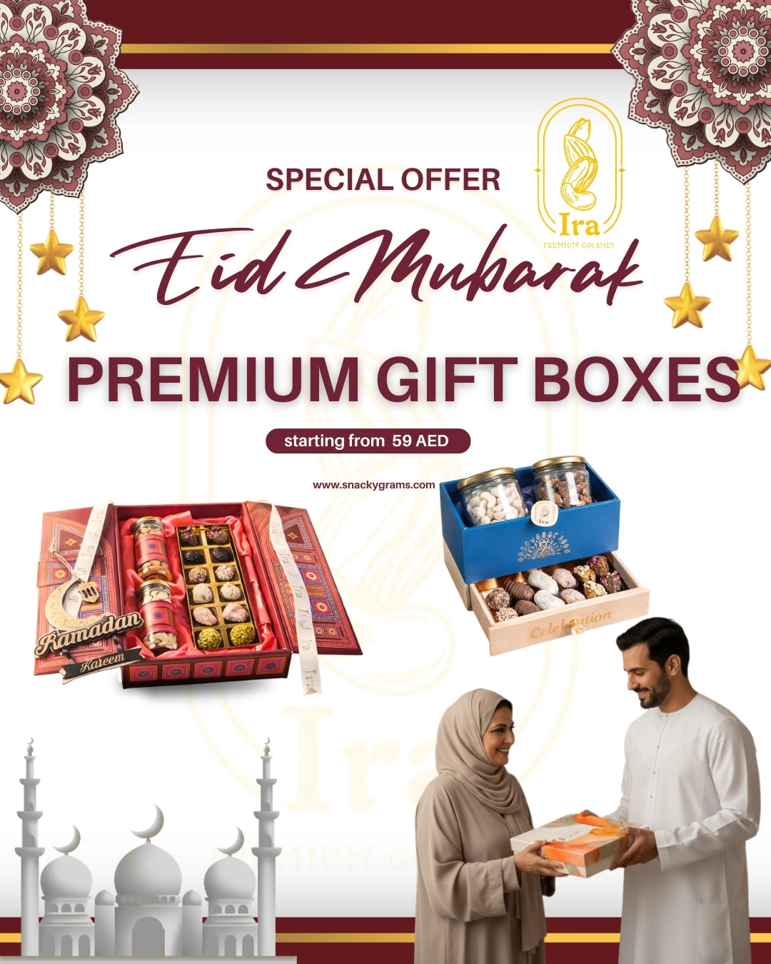 Celebrate every festival and special moment with IRĀ by Snacky Grams. Explore our carefully curated range of gourmet nuts, dry fruits, and combo packs perfect for gifting or indulging in wholesome delights. Elegant, festive, and ready to make every occasion memorable.